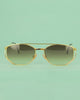 Cette paire de lunettes de soleil vintage présente une esthétique fine et élégante, caractéristique des modèles métalliques des années 70-80. La monture, réalisée en métal doré, se distingue par sa structure légère et ses lignes épurées qui mettent en valeur la forme des verres.
