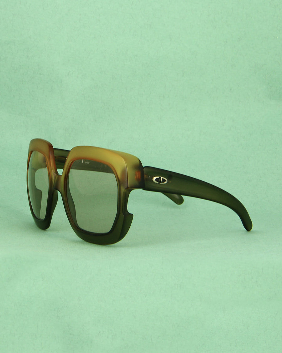 Découvrez ces lunettes de soleil vintage des années 70 signées Christian Dior, alliant élégance et authenticité. Leur monture unique en dégradés de vert et jaune apporte une touche rétro chic, tandis que les verres solaires de catégorie 2 teintés brun protègent efficacement vos yeux tout en sublimant votre style. Un accessoire incontournable pour affirmer votre personnalité avec raffinement.