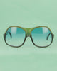 Grande monture oversize signée Saphira, à la silhouette douce et enveloppante. Réalisée en acétate aux nuances vert olive dégradé, elle se distingue par sa face large et son pont fluide qui accentue son style rétro. Un modèle expressif au charme vintage, typique des lunettes solaires des années 70-80.