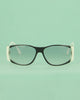 Monture solaire vintage Silhouette des années 70-80 au design oversize et enveloppant, typique des silhouettes audacieuses de l’époque. Sa face noire contrastée par des branches claires apporte une touche graphique forte et élégante.