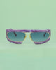 Lunettes de soleil Silhouette vintage au design audacieux et sculptural. La large barre supérieure en acétate violet marbré contraste avec la structure métallique dorée qui entoure les verres, créant une silhouette graphique très marquée. Les verres teintés bleutés et la construction semi-cerclée renforcent l’esthétique avant-gardiste typique des modèles iconiques de la marque. Une pièce expressive et distinctive, emblématique du design vintage des années 80.